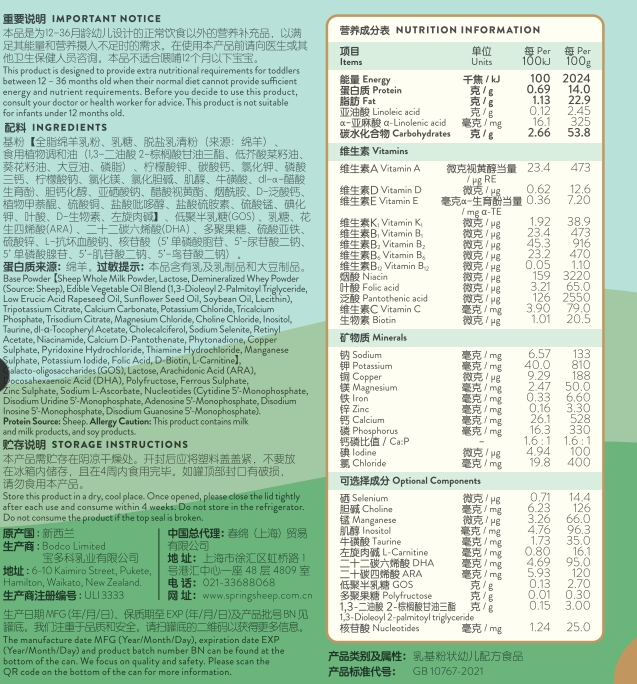 Spring Sheep Shipulin Toddler Milk Stage 3 is formulated supplementary foods for young children suitable for young children 12-36 months old. This product is formulated to comply with Codex regulations. It is made from the mixing of a wide range of vitamins and minerals. It also contains DHA (from Tuna fish oil) and ARA (from Mortierella Alpina oil)